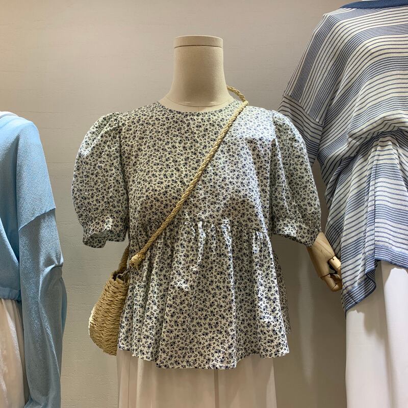 新品 花柄ラウンドネックボタンスリーブブラウス ⦿韓国 オルチャン K-pop アイドル ジャケット スーツ ワンピース カーディガン ニット フーディー トレーナー キャミソール スカート シャツ ブラウス 5B2171292