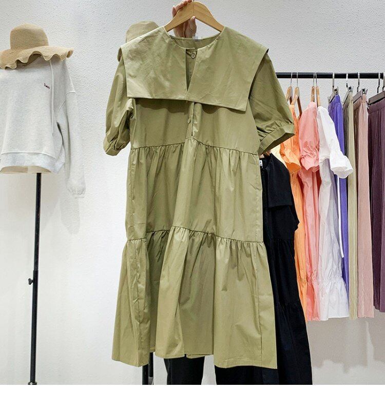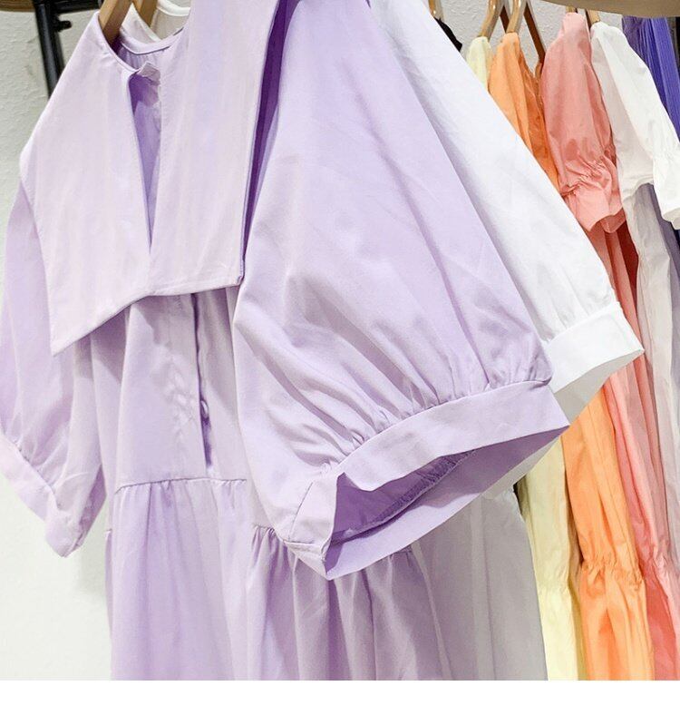 新品 体型カバー&カワイイ♥おおきめ襟シフォンワンピース♡ネイビー パープル レトロ ⦿韓国 オルチャン K-pop アイドル ジャケット スーツ ワンピース カーディガン ニット フーディー トレーナー キャミソール スカート シャツ ブラウス 5B9347094 | K clothig adult