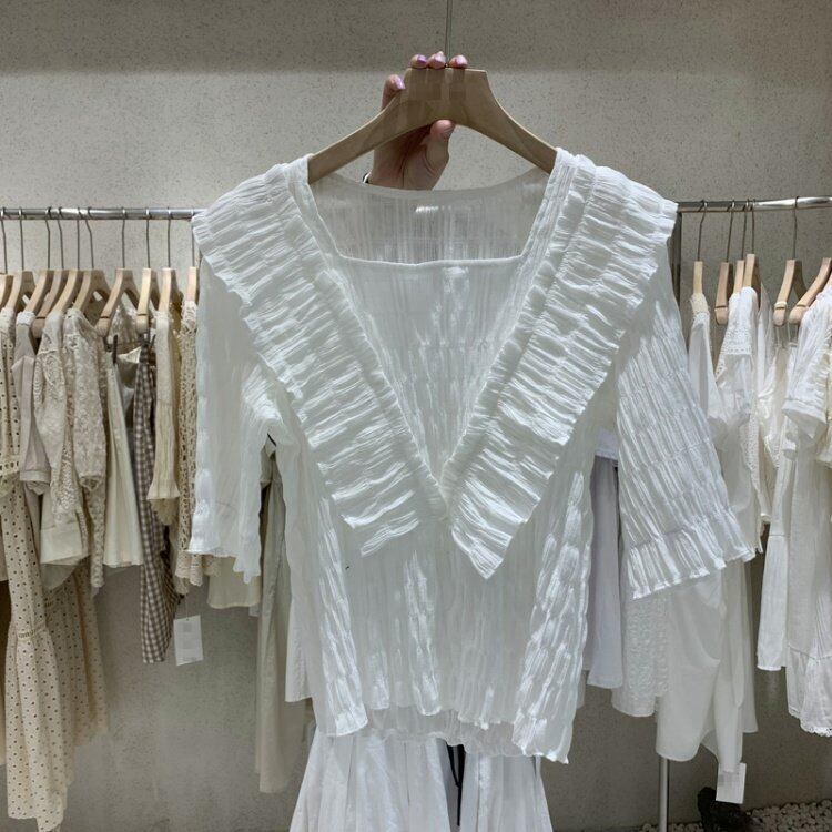 新品 ストレッチプリーツプルオーバー ソリッド カラートップス 大人女子☆ コットン エラスティック 伸縮 ピュア ソリッドカラー スクウェア ⦿韓国 オルチャン K-pop アイドル ジャケット スーツ ワンピース カーディガン ニット フーディー トレーナー キャミソール スカート シャツ ブラウス 5B6070794