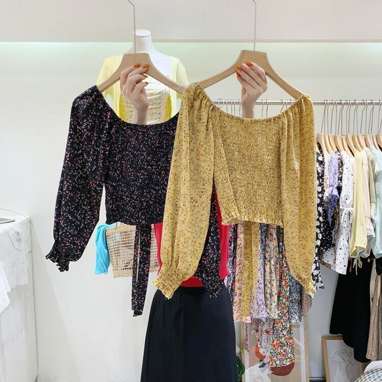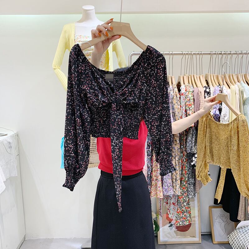 新品 花柄シャツブラウス♡Vネックスリム ランタンスリーブ ⦿韓国 オルチャン K-pop アイドル ジャケット スーツ ワンピース カーディガン ニット フーディー トレーナー キャミソール スカート シャツ ブラウス 5B3021561