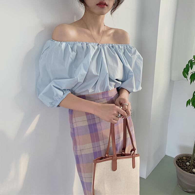 新品 シャツブラウススリムチェック柄スカート ⦿韓国 オルチャン K-pop アイドル ジャケット スーツ ワンピース カーディガン ニット フーディー トレーナー キャミソール スカート シャツ ブラウス 5A4116102