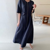 新品 スタンダードラウンドネックジッパー★スリーブロングスカート レトロ ⦿韓国 オルチャン K-pop アイドル ジャケット スーツ ワンピース カーディガン ニット フーディー トレーナー キャミソール スカート シャツ ブラウス 5A5011050