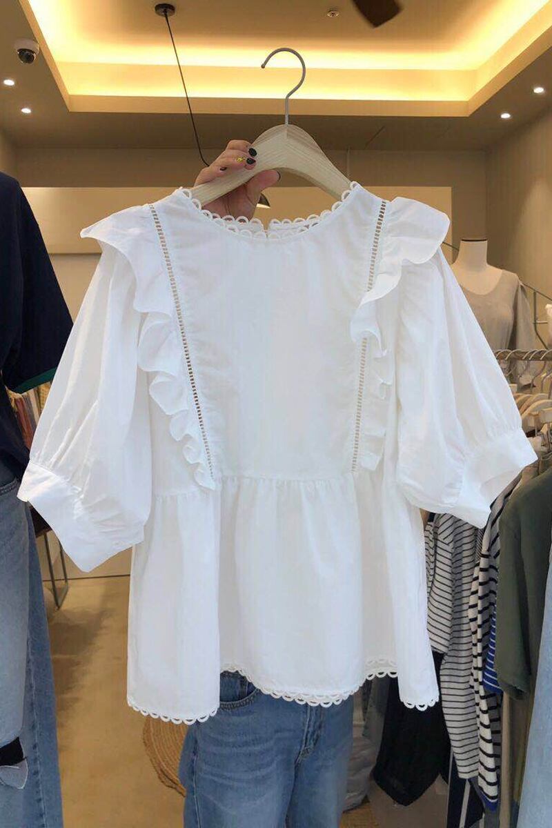 新品 レースシャツブラウスラウンドネックトップス ⦿韓国 オルチャン K-pop アイドル ジャケット スーツ ワンピース カーディガン ニット フーディー トレーナー キャミソール スカート シャツ ブラウス 5B5219312 | K clothig adult