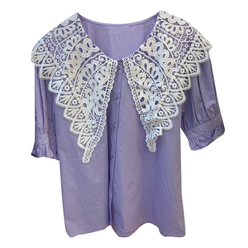 新品 サマーカジュアルスリーブ半袖レースシャツブラウス ショート 半袖スリーブ 夏物 ステッチ ⦿韓国 オルチャン K-pop アイドル ジャケット スーツ ワンピース カーディガン ニット フーディー トレーナー キャミソール スカート シャツ ブラウス 5B3303561