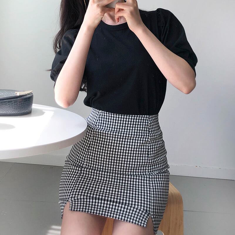 新品 ラウンドネックスリーブTシャツ 今年流行☆チェック柄スカート ⦿韓国 オルチャン K-pop アイドル ジャケット スーツ ワンピース カーディガン ニット フーディー トレーナー キャミソール スカート シャツ ブラウス 5A7231150