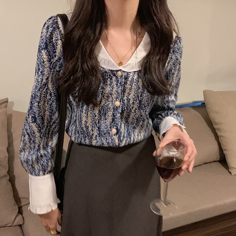 新品 ブループリント柄シャツブラウストップス ロング ⦿韓国 オルチャン K-pop アイドル ジャケット スーツ ワンピース カーディガン ニット フーディー トレーナー キャミソール スカート シャツ ブラウス 5A0337638 | K clothig adult