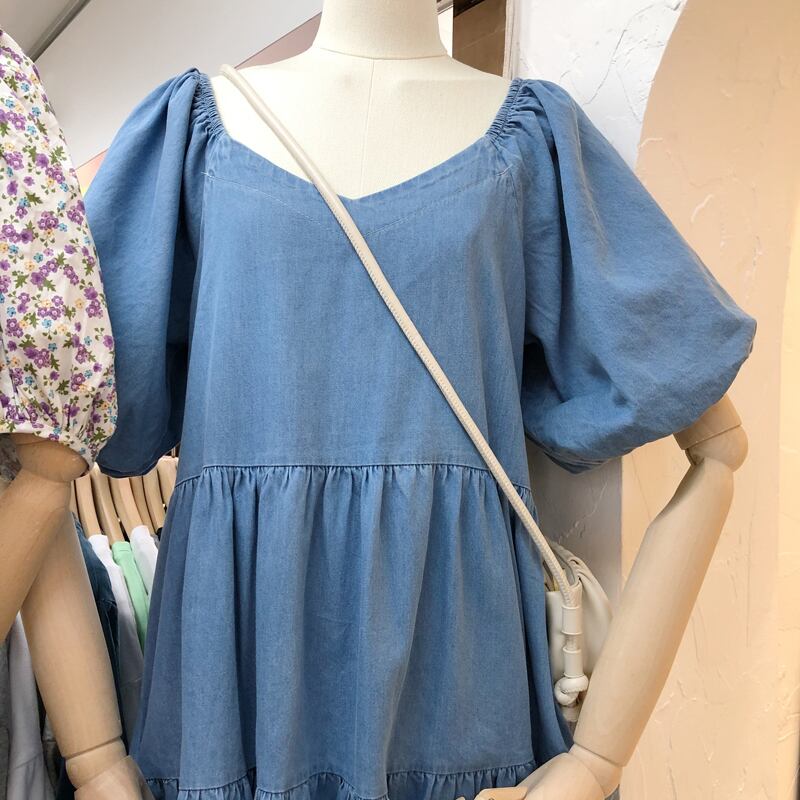 新品 サマースリーブルーズドレス ワンピース スウィート 夏物 ⦿韓国 オルチャン K-pop アイドル ジャケット スーツ ワンピース カーディガン ニット フーディー トレーナー キャミソール スカート シャツ ブラウス 5B5934438
