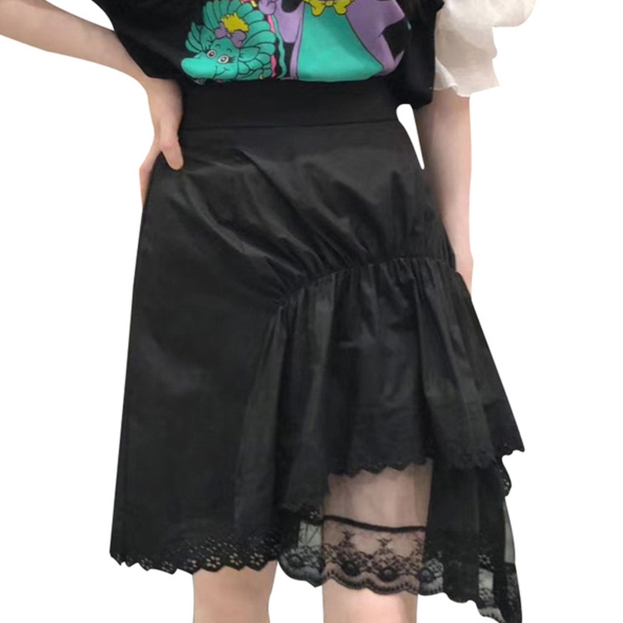 新品 メッシュレースストレッチ★ラッフルスカート エラスティック 伸縮 ⦿韓国 オルチャン K-pop アイドル ジャケット スーツ ワンピース カーディガン ニット フーディー トレーナー キャミソール スカート シャツ ブラウス 5B1728311
