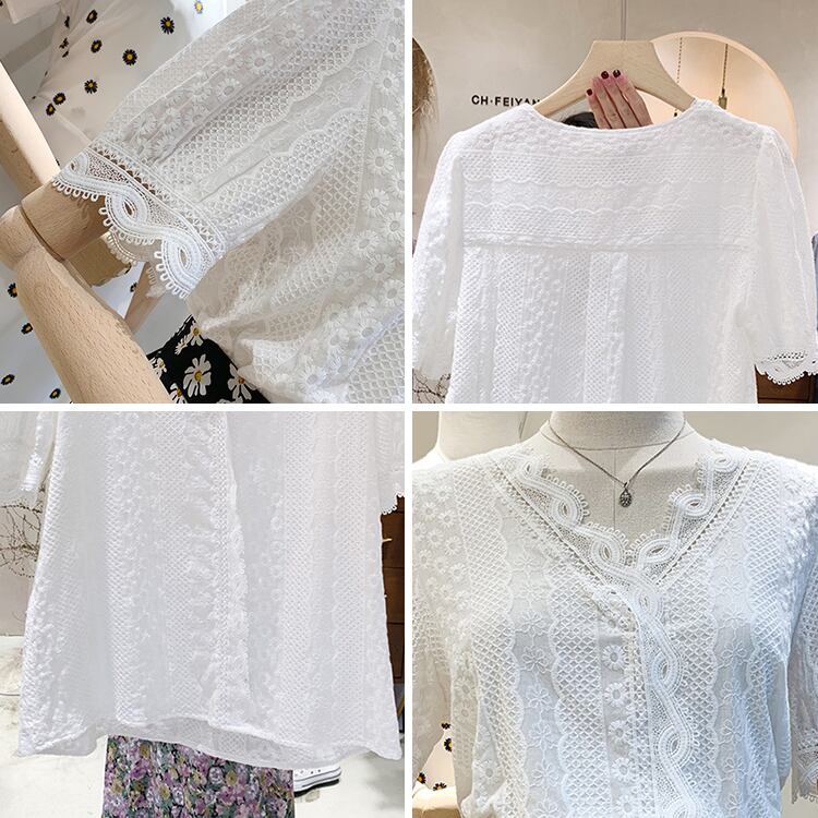 新品 Vネック刺繍レースプルオーバー シャツブラウス コットン スウィート ステッチ ⦿韓国 オルチャン K-pop アイドル ジャケット スーツ ワンピース カーディガン ニット フーディー トレーナー キャミソール スカート シャツ ブラウス 5B5108111 | K clothig adult
