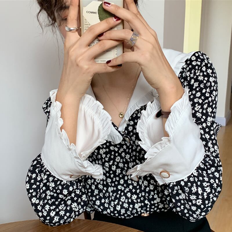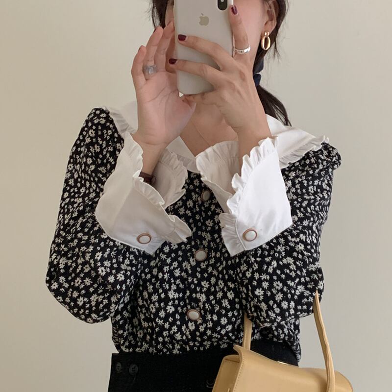 新品 ♡スタンダード花柄スリーブシャツブラウス レトロ ステッチ ⦿韓国 オルチャン K-pop アイドル ジャケット スーツ ワンピース カーディガン ニット フーディー トレーナー キャミソール スカート シャツ ブラウス 5A7975984 | K clothig adult