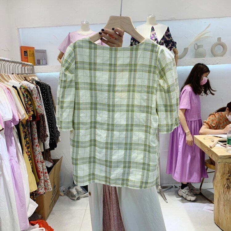新品 チェック柄シャツブラウスVネック コットン ⦿韓国 オルチャン K-pop アイドル ジャケット スーツ ワンピース カーディガン ニット フーディー トレーナー キャミソール スカート シャツ ブラウス 5B4146189
