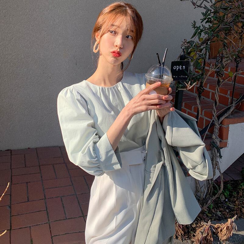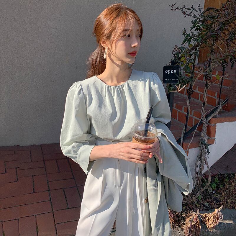 新品 ラウンドネックプリーツスリーブシャツブラウスカジュアル ⦿韓国 オルチャン K-pop アイドル ジャケット スーツ ワンピース カーディガン ニット フーディー トレーナー キャミソール スカート シャツ ブラウス 5A0635219 | K clothig adult