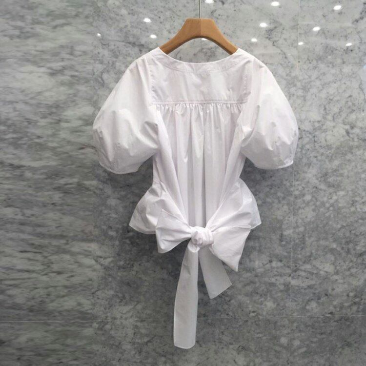 新品 バックリボンシャツブラウス大人女子☆♡★Vネック ⦿韓国 オルチャン K-pop アイドル ジャケット スーツ ワンピース カーディガン ニット フーディー トレーナー キャミソール スカート シャツ ブラウス 5B1536427