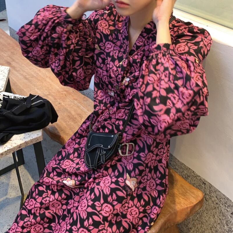 新品 スタンダードVネック花柄レーススリーブロングスカート ランタンスリーブ レトロ パープル ⦿韓国 オルチャン K-pop アイドル ジャケット スーツ ワンピース カーディガン ニット フーディー トレーナー キャミソール スカート シャツ ブラウス 5A1255694 | K clothig adult