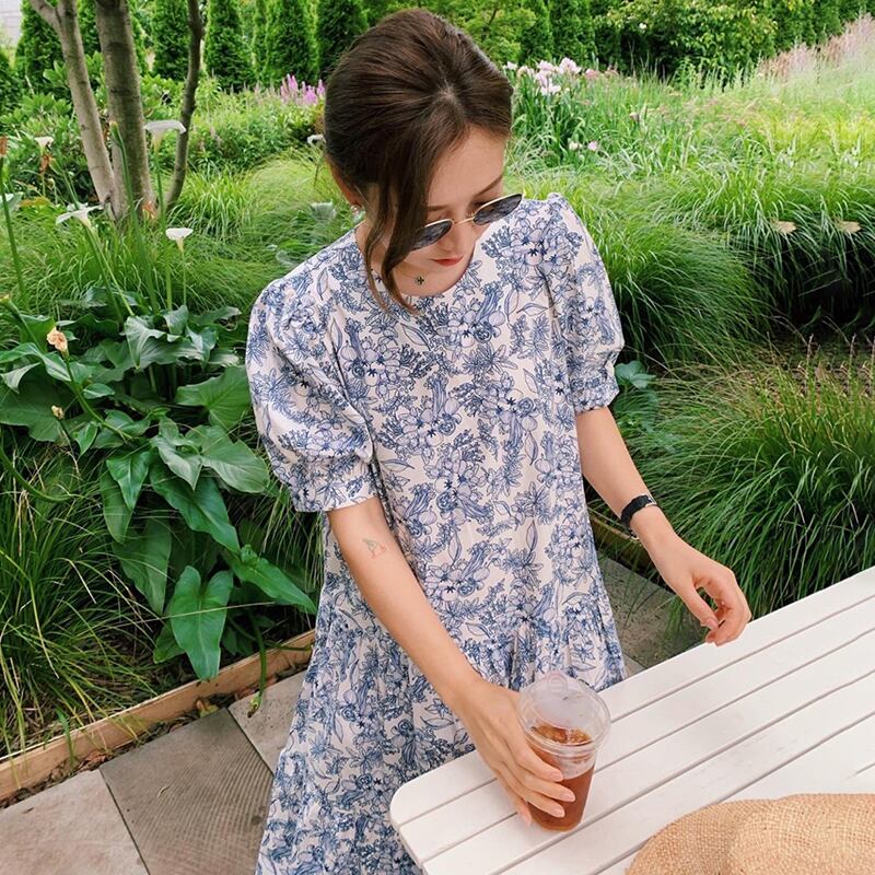 新品 スタンダードプリントラウンドネックロングスリーブ レトロ ⦿韓国 オルチャン K-pop アイドル ジャケット スーツ ワンピース カーディガン ニット フーディー トレーナー キャミソール スカート シャツ ブラウス 5A6713209 | K clothig adult