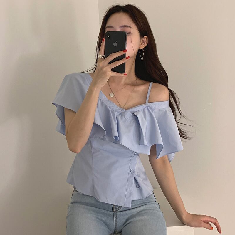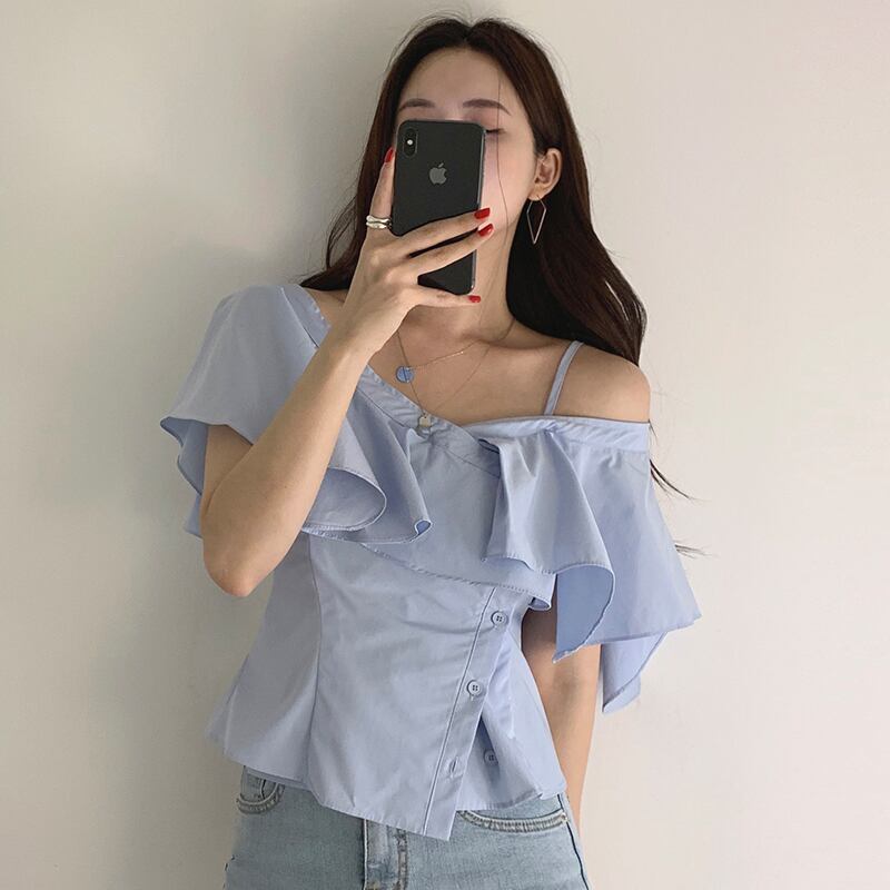 新品 バックルショートシャツブラウストップス ⦿韓国 オルチャン K-pop アイドル ジャケット スーツ ワンピース カーディガン ニット フーディー トレーナー キャミソール スカート シャツ ブラウス 5A8233889
