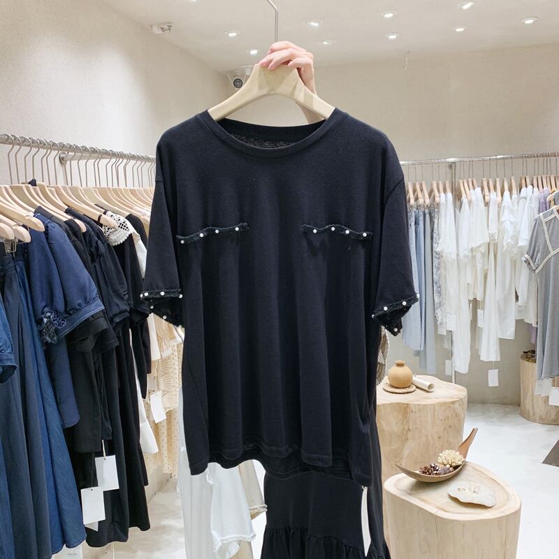 新品 サマーパールルーズ半袖スリーブTシャツ ショート 夏物 真珠 ⦿韓国 オルチャン K-pop アイドル ジャケット スーツ ワンピース カーディガン ニット フーディー トレーナー キャミソール スカート シャツ ブラウス 5B1825457