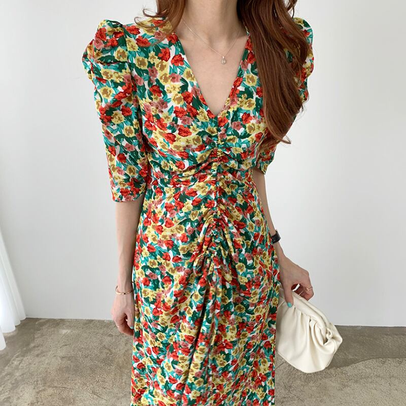 新品 ♡♥カワイイ♥Vネックギャザー★スリーブ花柄シフォン スウィート ⦿韓国 オルチャン K-pop アイドル ジャケット スーツ ワンピース カーディガン ニット フーディー トレーナー キャミソール スカート シャツ ブラウス 5A4530883
