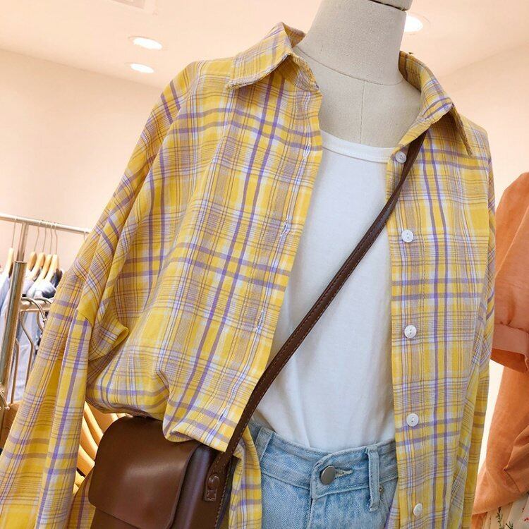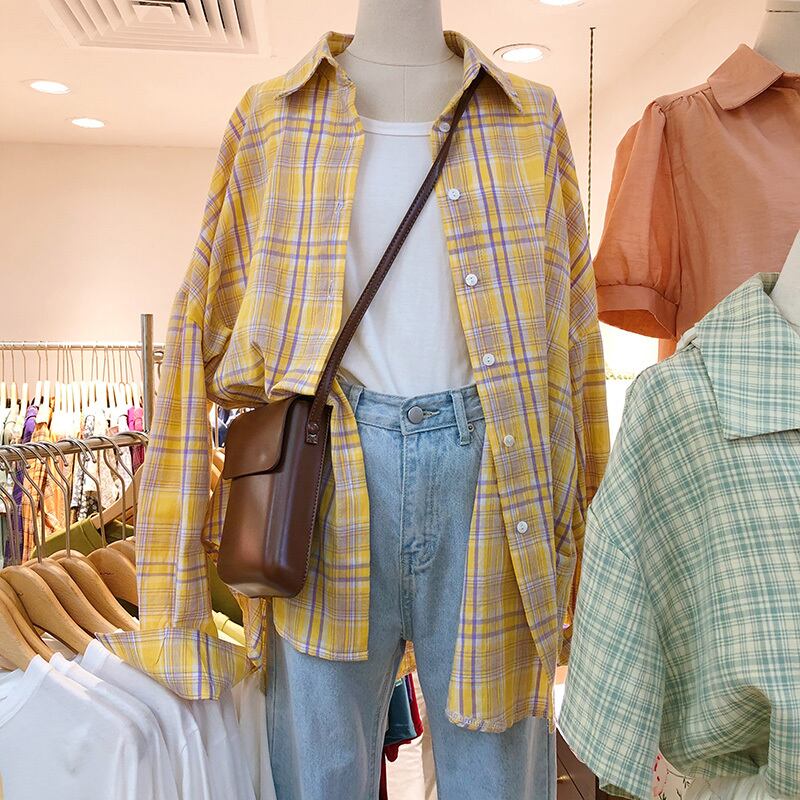 新品 チェック柄シャツブラウスカジュアル ⦿韓国 オルチャン K-pop アイドル ジャケット スーツ ワンピース カーディガン ニット フーディー トレーナー キャミソール スカート シャツ ブラウス 5B4307610