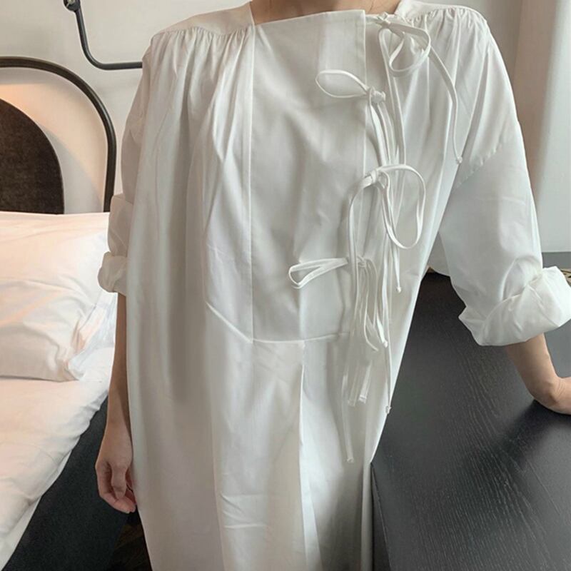 新品 スタンダード♡リボンカラーロングシャツブラウス レトロ ピュア スクウェア ⦿韓国 オルチャン K-pop アイドル ジャケット スーツ ワンピース カーディガン ニット フーディー トレーナー キャミソール スカート シャツ ブラウス 5A7484623 | K clothig adult