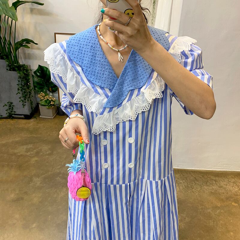 新品 ♡ストライプレースダブルブレストスリーブ ステッチ ⦿韓国 オルチャン K-pop アイドル ジャケット スーツ ワンピース カーディガン ニット フーディー トレーナー キャミソール スカート シャツ ブラウス 5A6322812
