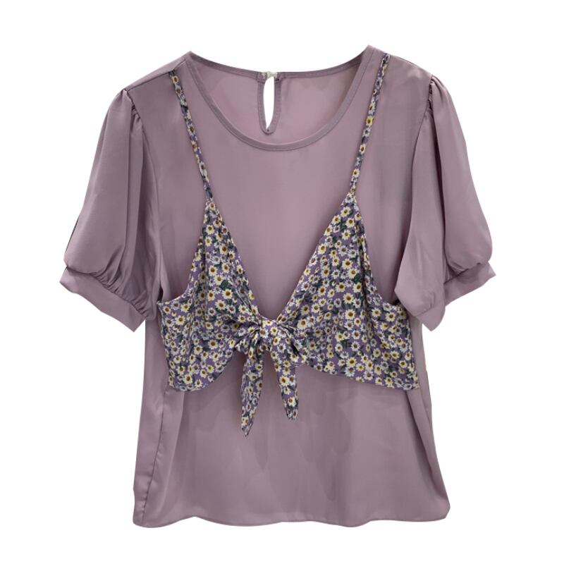 新品 サマーラウンドネックプルオーバー スリーブ花柄トップス 大人女子☆ 夏物 ステッチ ⦿韓国 オルチャン K-pop アイドル ジャケット スーツ ワンピース カーディガン ニット フーディー トレーナー キャミソール スカート シャツ ブラウス 5B4669002 | K clothig adult