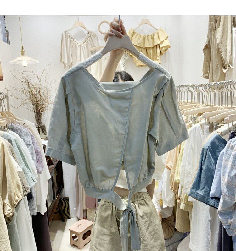 新品 スリーブバックレーストップス コットン スクウェア ⦿韓国 オルチャン K-pop アイドル ジャケット スーツ ワンピース カーディガン ニット フーディー トレーナー キャミソール スカート シャツ ブラウス 5B1398187