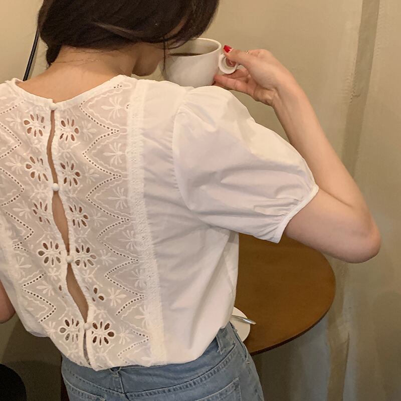 新品 スタンダードラウンドネックバックスリーブシャツブラウス大人女子☆ レトロ ⦿韓国 オルチャン K-pop アイドル ジャケット スーツ ワンピース カーディガン ニット フーディー トレーナー キャミソール スカート シャツ ブラウス 5A7680464