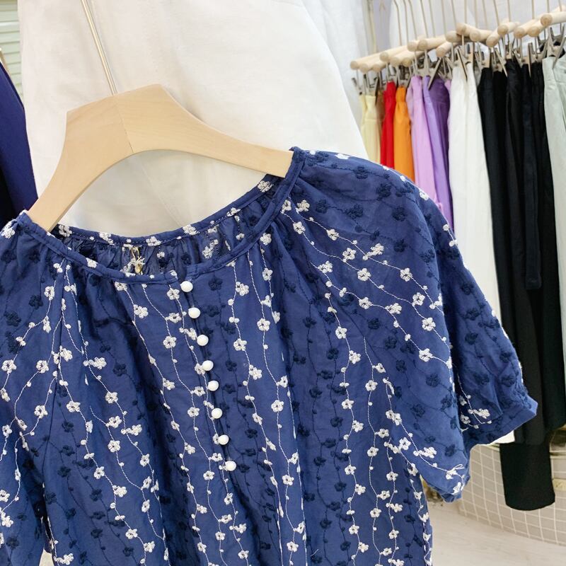 新品 ブラウス ラウンドネック刺繍パールバックルプルオーバー シャツブラウス 真珠 ⦿韓国 オルチャン K-pop アイドル ジャケット スーツ ワンピース カーディガン ニット フーディー トレーナー キャミソール スカート シャツ ブラウス 5B2575750