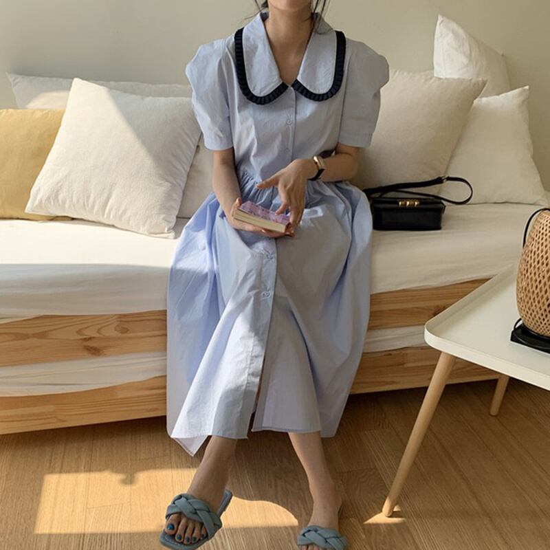 新品 スタンダードブループリーツシングルブレストスリーブロングスカート レトロ ステッチ ⦿韓国 オルチャン K-pop アイドル ジャケット スーツ ワンピース カーディガン ニット フーディー トレーナー キャミソール スカート シャツ ブラウス 5A7590986