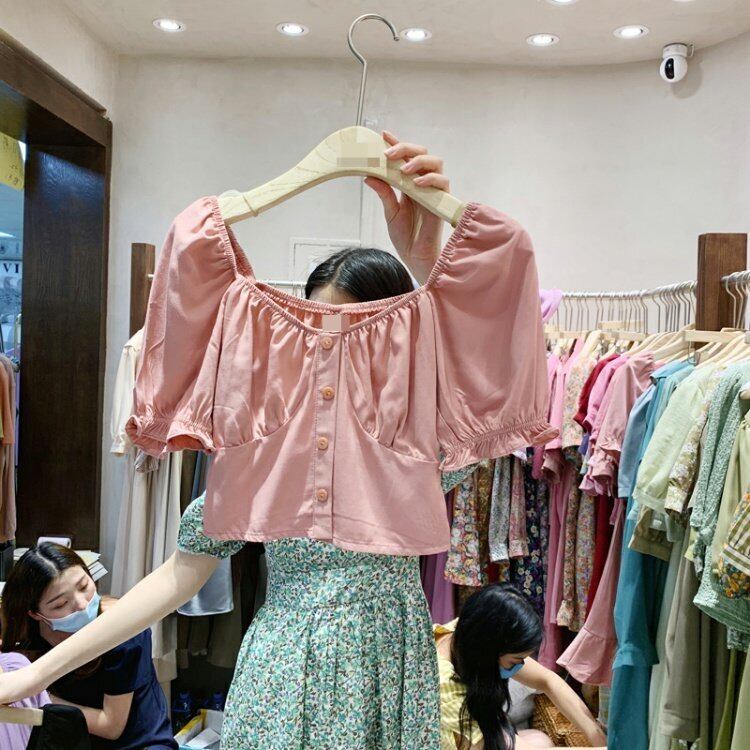 新品 ショートスリーブスリムシャツブラウス 半袖スリーブ スウィート スクウェア ⦿韓国 オルチャン K-pop アイドル ジャケット スーツ ワンピース カーディガン ニット フーディー トレーナー キャミソール スカート シャツ ブラウス 5B2825340