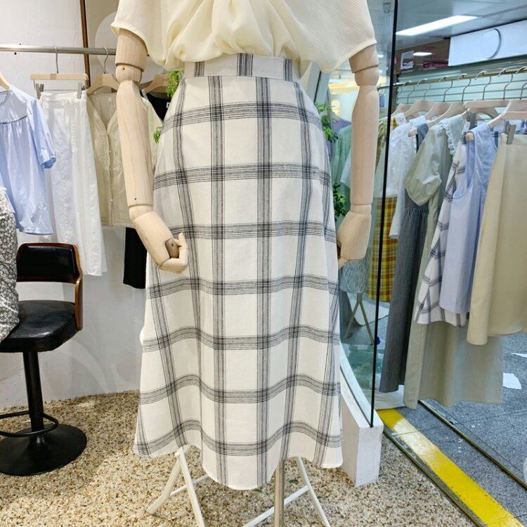 新品 バックストレッチチェック柄スカート コットン エラスティック 伸縮 スウィート ⦿韓国 オルチャン K-pop アイドル ジャケット スーツ ワンピース カーディガン ニット フーディー トレーナー キャミソール スカート シャツ ブラウス 5B1454940
