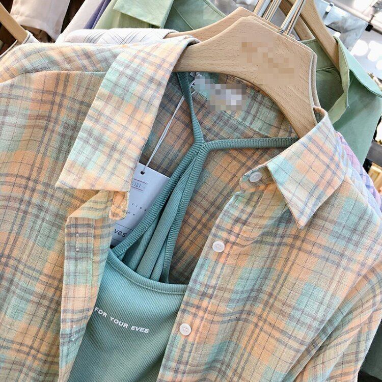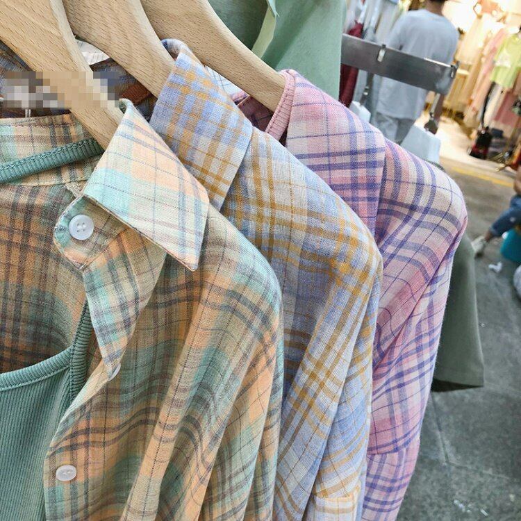 新品 ロングチェック柄シャツブラウスショート ⦿韓国 オルチャン K-pop アイドル ジャケット スーツ ワンピース カーディガン ニット フーディー トレーナー キャミソール スカート シャツ ブラウス 5B2809864 | K clothig adult