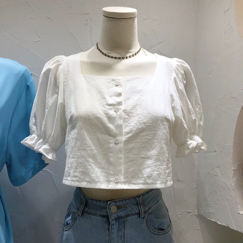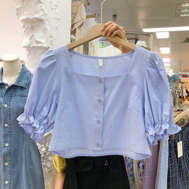 新品 サマースリーブ♥カワイイ♥ショートトップス スウィート 夏物 ピュア スクウェア ⦿韓国 オルチャン K-pop アイドル ジャケット スーツ ワンピース カーディガン ニット フーディー トレーナー キャミソール スカート シャツ ブラウス 5B9543126