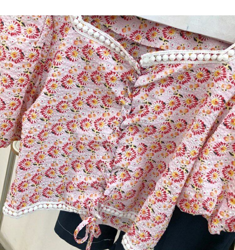 新品 ♥カワイイ♥カラー花柄スリーブショートトップス スウィート ピュア ⦿韓国 オルチャン K-pop アイドル ジャケット スーツ ワンピース カーディガン ニット フーディー トレーナー キャミソール スカート シャツ ブラウス 5B0125730