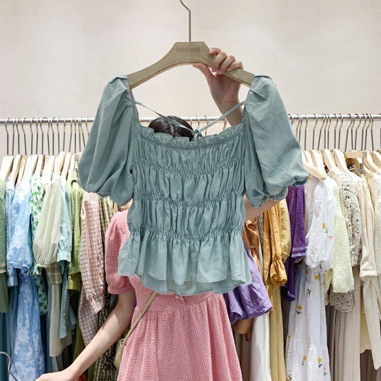 新品 スリムスリーブプルオーバー ショートシャツブラウス ⦿韓国 オルチャン K-pop アイドル ジャケット スーツ ワンピース カーディガン ニット フーディー トレーナー キャミソール スカート シャツ ブラウス 5B7106617