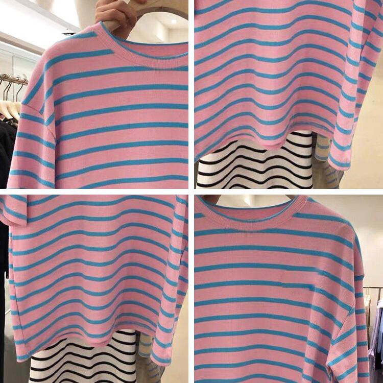 新品 ストライプTシャツ 大人女子☆♡トップス ⦿韓国 オルチャン K-pop アイドル ジャケット スーツ ワンピース カーディガン ニット フーディー トレーナー キャミソール スカート シャツ ブラウス 5B4200921