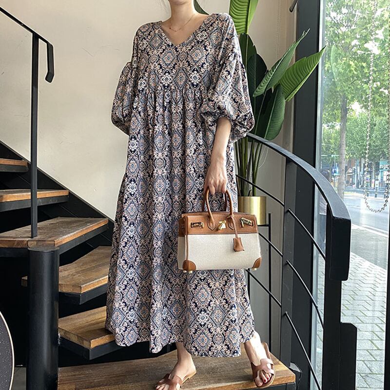 新品 スタンダードエスニックプリント柄Vネックカジュアルスリーブロングスカート ランタンスリーブ レトロ ⦿韓国 オルチャン K-pop アイドル ジャケット スーツ ワンピース カーディガン ニット フーディー トレーナー キャミソール スカート シャツ ブラウス 5A6430495 | K clothig adult