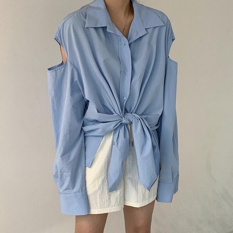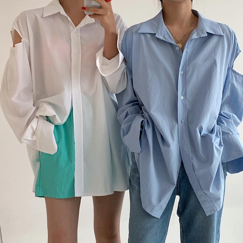 新品 シャツブラウス ロング オフショルダー ⦿韓国 オルチャン K-pop アイドル ジャケット スーツ ワンピース カーディガン ニット フーディー トレーナー キャミソール スカート シャツ ブラウス 5A1827393