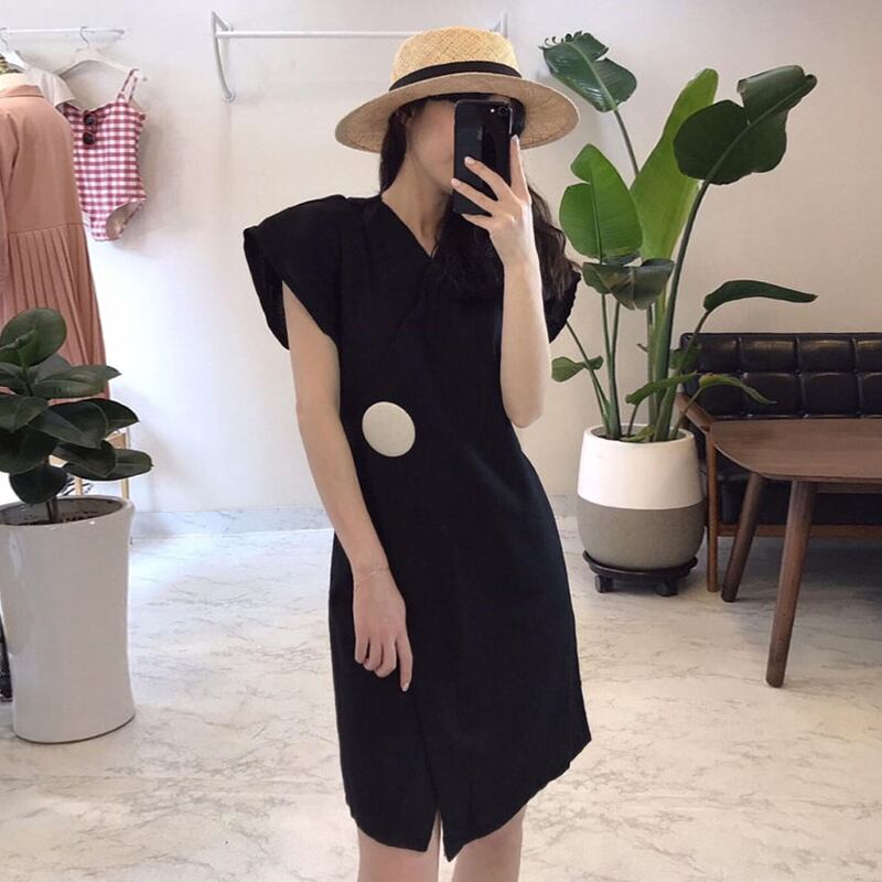 新品 スタンダードサイドボタンVネックロング レトロ ⦿韓国 オルチャン K-pop アイドル ジャケット スーツ ワンピース カーディガン ニット フーディー トレーナー キャミソール スカート シャツ ブラウス 5A9790672