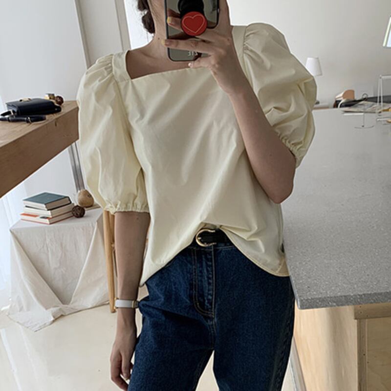 新品 スタンダード♥カワイイ♥スリーブシャツブラウス大人女子☆ レトロ スクウェア ⦿韓国 オルチャン K-pop アイドル ジャケット スーツ ワンピース カーディガン ニット フーディー トレーナー キャミソール スカート シャツ ブラウス 5A8565259