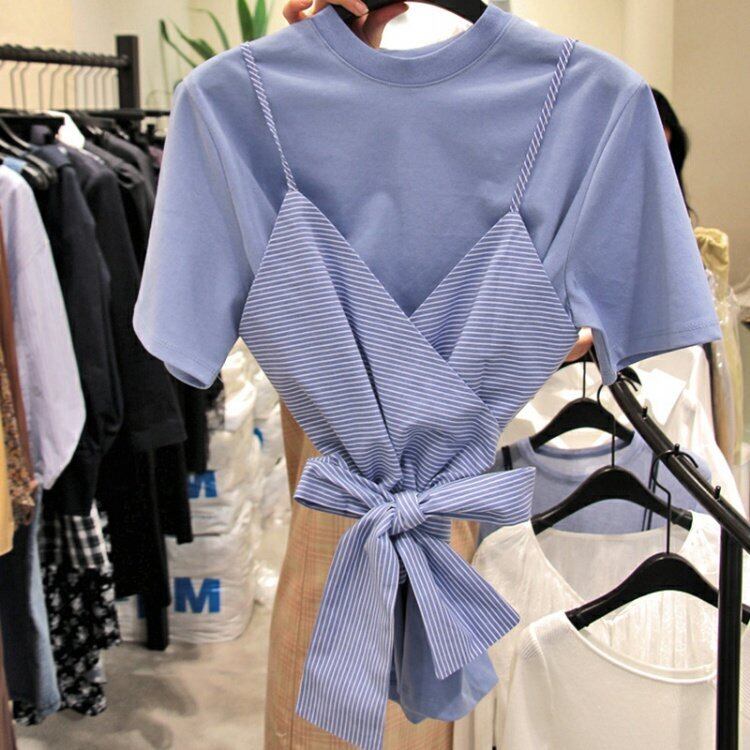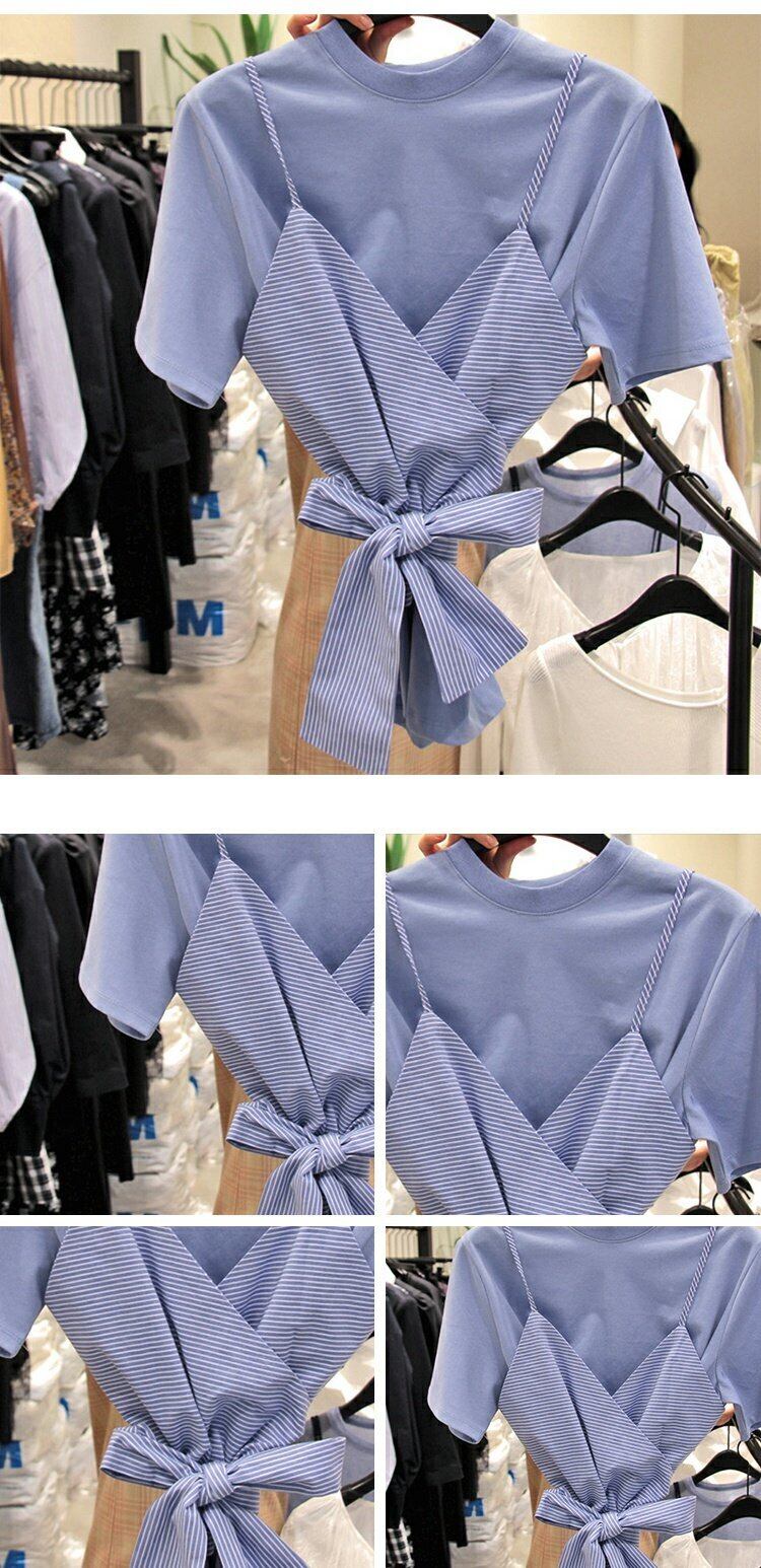 新品 ストライプリボンラウンドネックシャツブラウストップス ⦿韓国 オルチャン K-pop アイドル ジャケット スーツ ワンピース カーディガン ニット フーディー トレーナー キャミソール スカート シャツ ブラウス 5B4824213