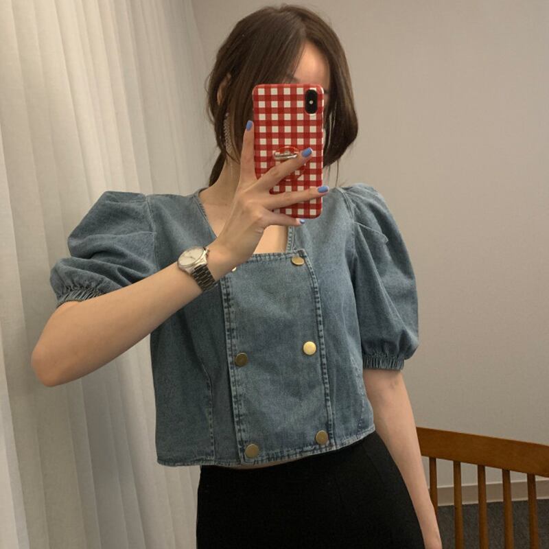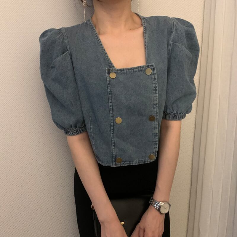 新品 スタンダード♥カワイイ♥ダブルブレストスリーブショートジャケット レトロ スクウェア ⦿韓国 オルチャン K-pop アイドル ジャケット スーツ ワンピース カーディガン ニット フーディー トレーナー キャミソール スカート シャツ ブラウス 5A9830434