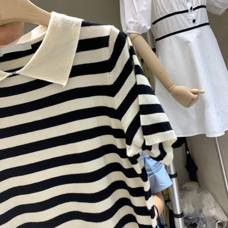 新品 ♥カワイイ♥ストライプニットブラウス ⦿韓国 オルチャン K-pop アイドル ジャケット スーツ ワンピース カーディガン ニット フーディー トレーナー キャミソール スカート シャツ ブラウス 5B1431038