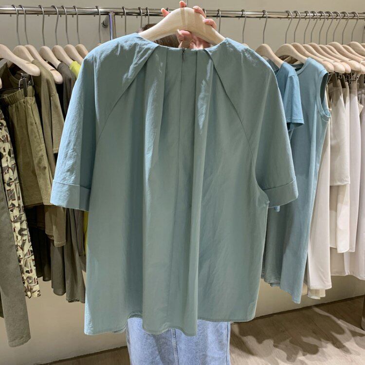 新品 サマープリーツラウンドネックバックジッパースリーブカジュアル♥カワイイ♥シャツブラウス 夏物 ⦿韓国 オルチャン K-pop アイドル ジャケット スーツ ワンピース カーディガン ニット フーディー トレーナー キャミソール スカート シャツ ブラウス 5B8648353