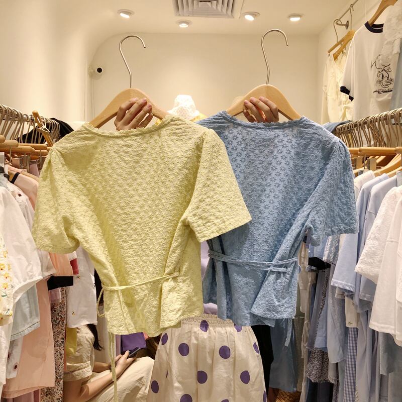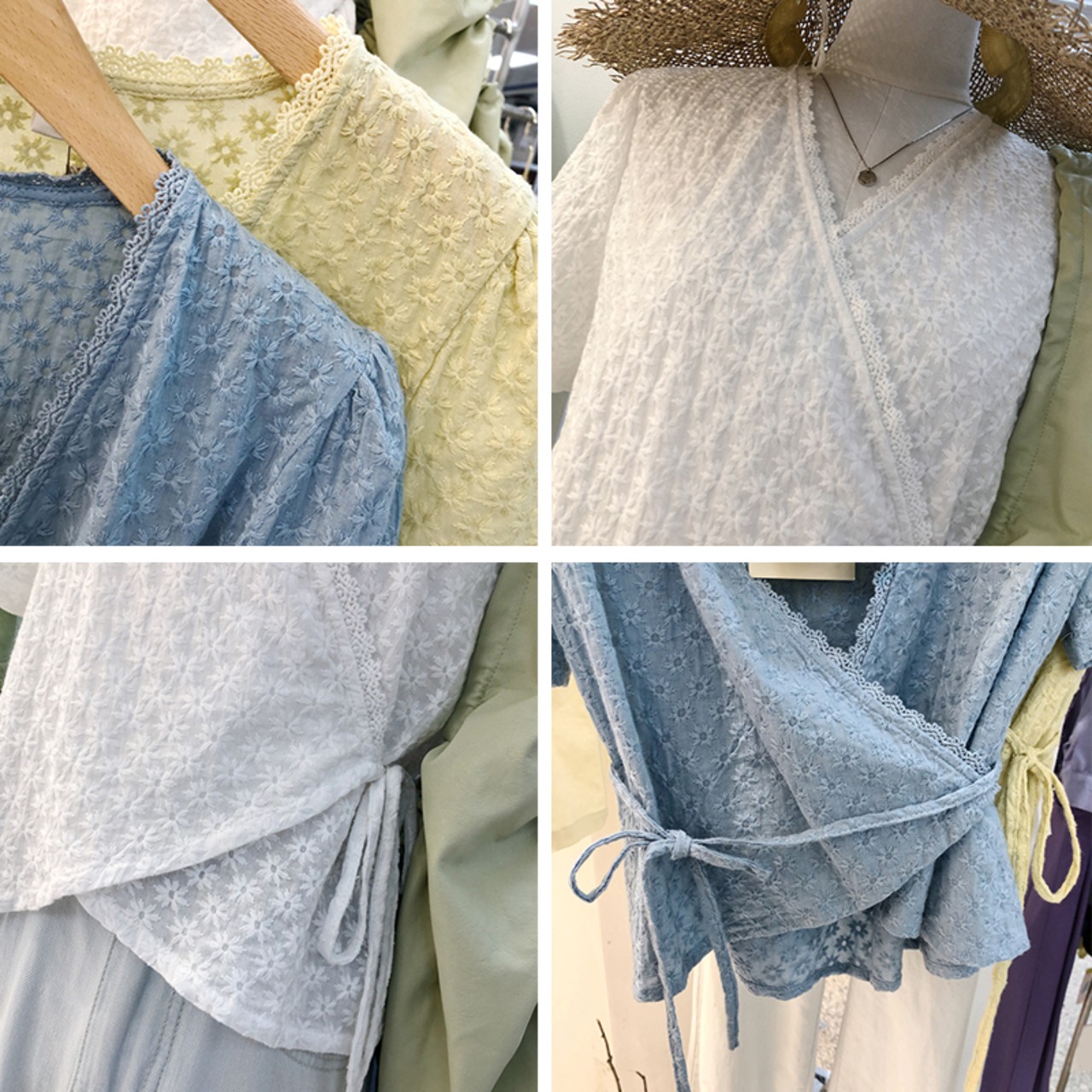 新品 カラー刺繍バンド★ブラウス 大人女子☆ コットン スウィート ピュア ⦿韓国 オルチャン K-pop アイドル ジャケット スーツ ワンピース カーディガン ニット フーディー トレーナー キャミソール スカート シャツ ブラウス 5B6058116