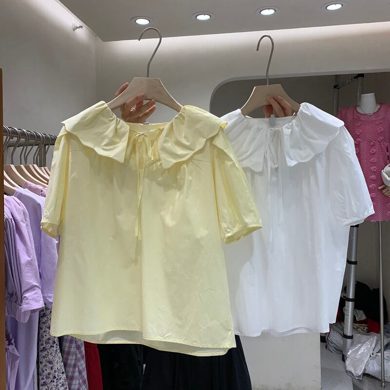 新品 サマーバンドスリーブ♡♥カワイイ♥プルオーバー シャツブラウス 夏物 ステッチ ⦿韓国 オルチャン K-pop アイドル ジャケット スーツ ワンピース カーディガン ニット フーディー トレーナー キャミソール スカート シャツ ブラウス 5B2208581
