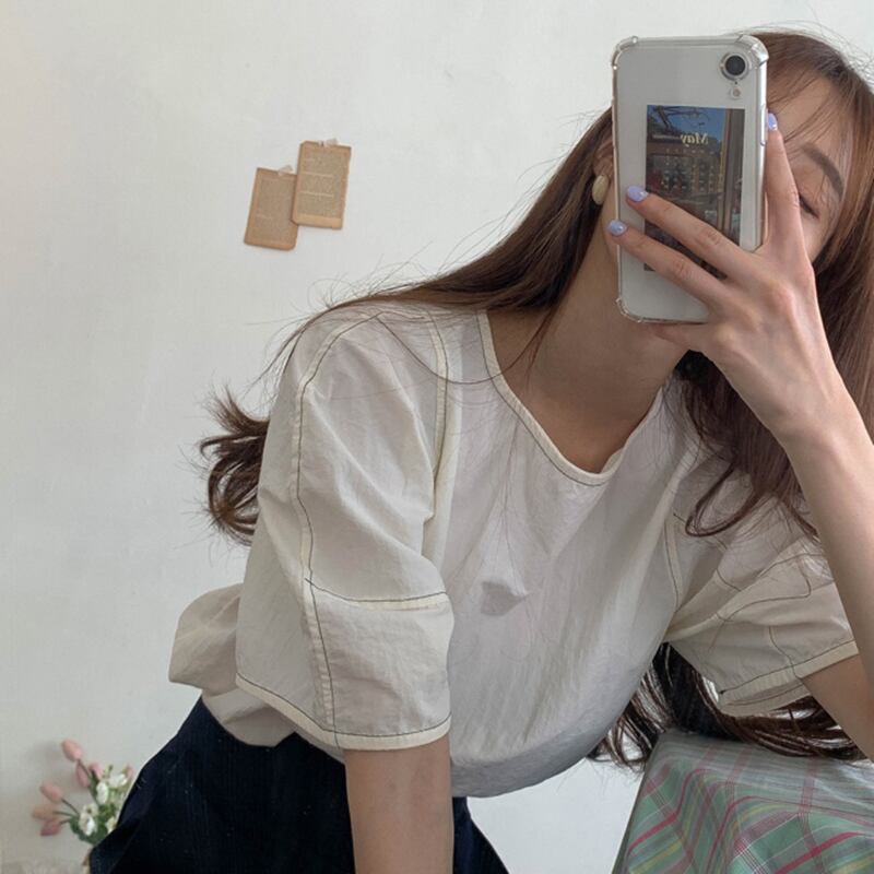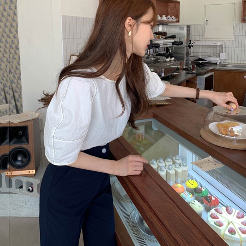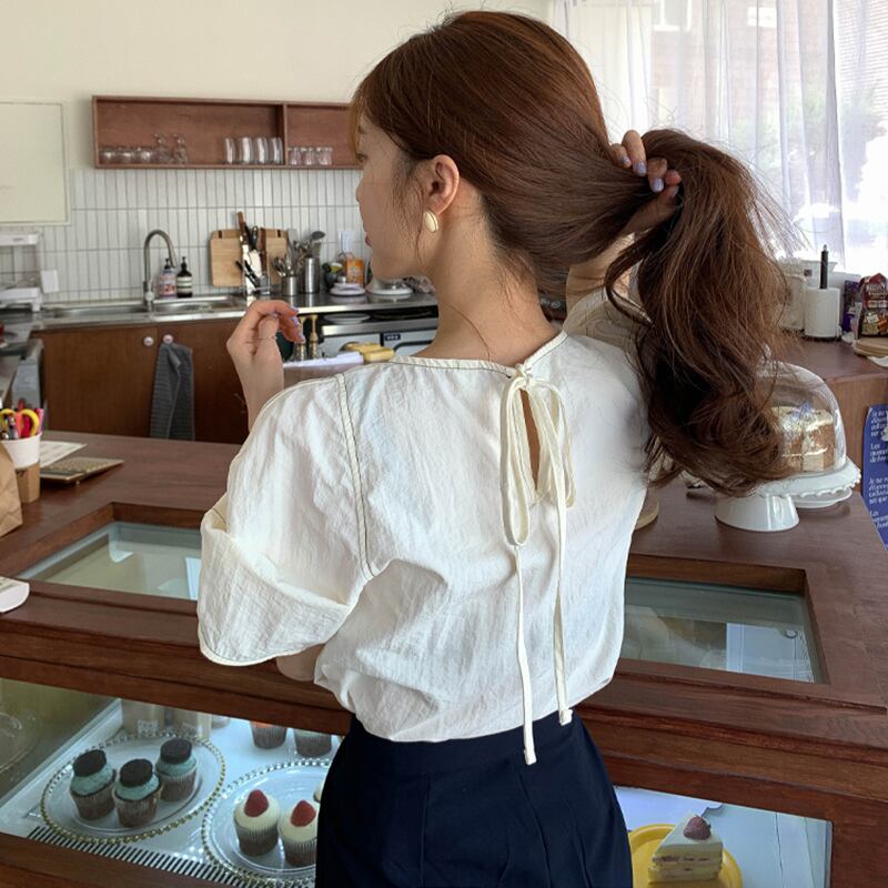 新品 ラウンドネックラインバックスリーブシャツブラウススリムカジュアル ⦿韓国 オルチャン K-pop アイドル ジャケット スーツ ワンピース カーディガン ニット フーディー トレーナー キャミソール スカート シャツ ブラウス 5A4765813