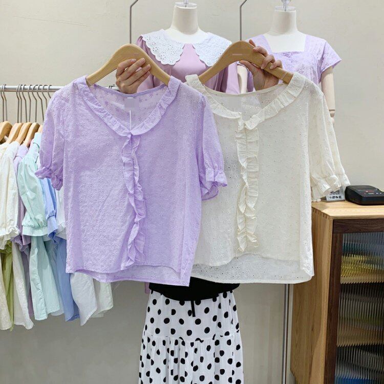 新品 Vネックシャツブラウスカジュアル レッド コットン 刺繍 ⦿韓国 オルチャン K-pop アイドル ジャケット スーツ ワンピース カーディガン ニット フーディー トレーナー キャミソール スカート シャツ ブラウス 5B7959497