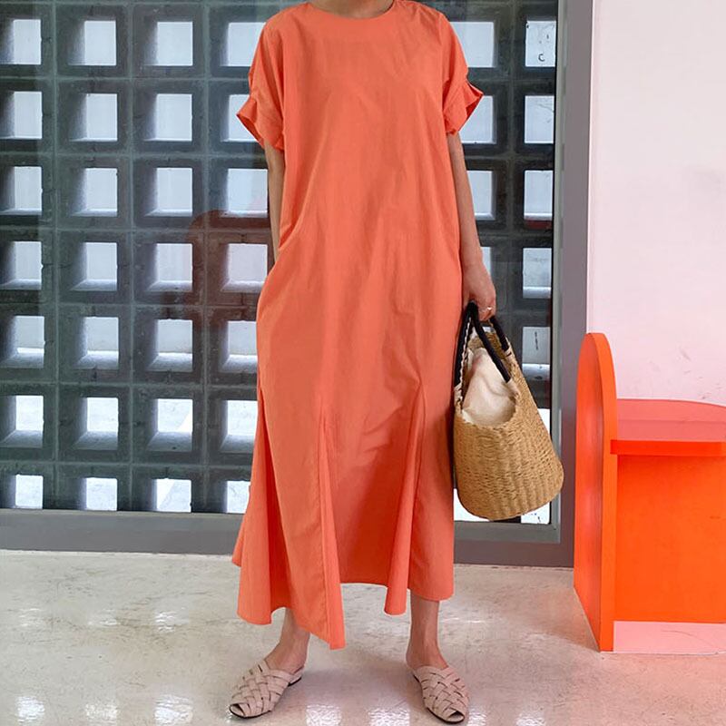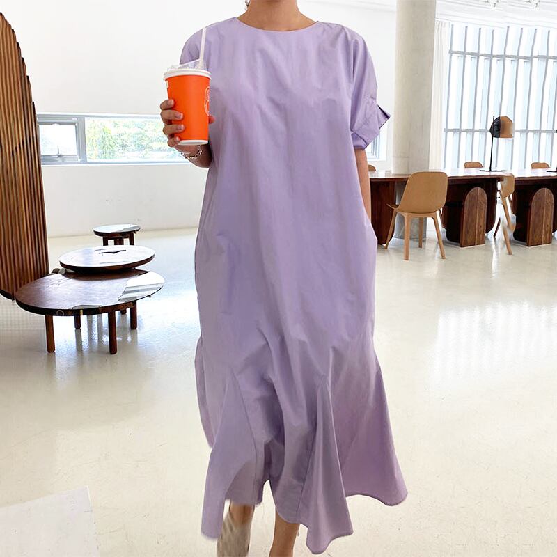 新品 白ラウンドネックカジュアルスリーブロングスカート ホワイト ⦿韓国 オルチャン K-pop アイドル ジャケット スーツ ワンピース カーディガン ニット フーディー トレーナー キャミソール スカート シャツ ブラウス 5A6067991